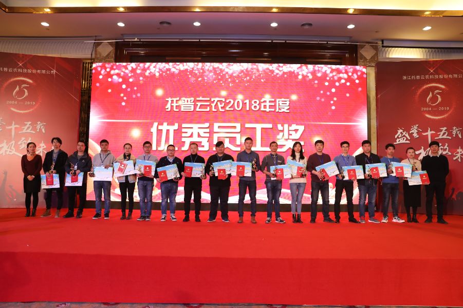 在完成對老員工的頒獎之后,我們對公司的兩位創始人婷總與朱總進行了特別表彰,感謝他們開創了托普公司,感謝他們十余年來的辛勤付出,嘔心瀝血,才有了如今的托普云農!