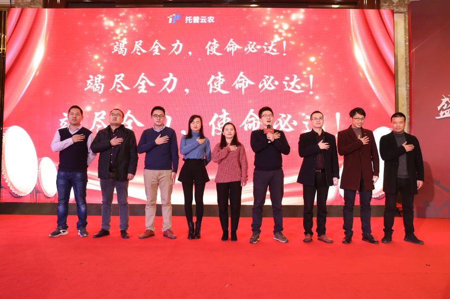 在陳董事長慷慨激昂的發言之后,托普云農銷售團隊以及信息化團隊上臺進行誓師儀式,他們元氣滿滿,氣宇軒昂,對來年的任務整裝待發,胸有成竹!