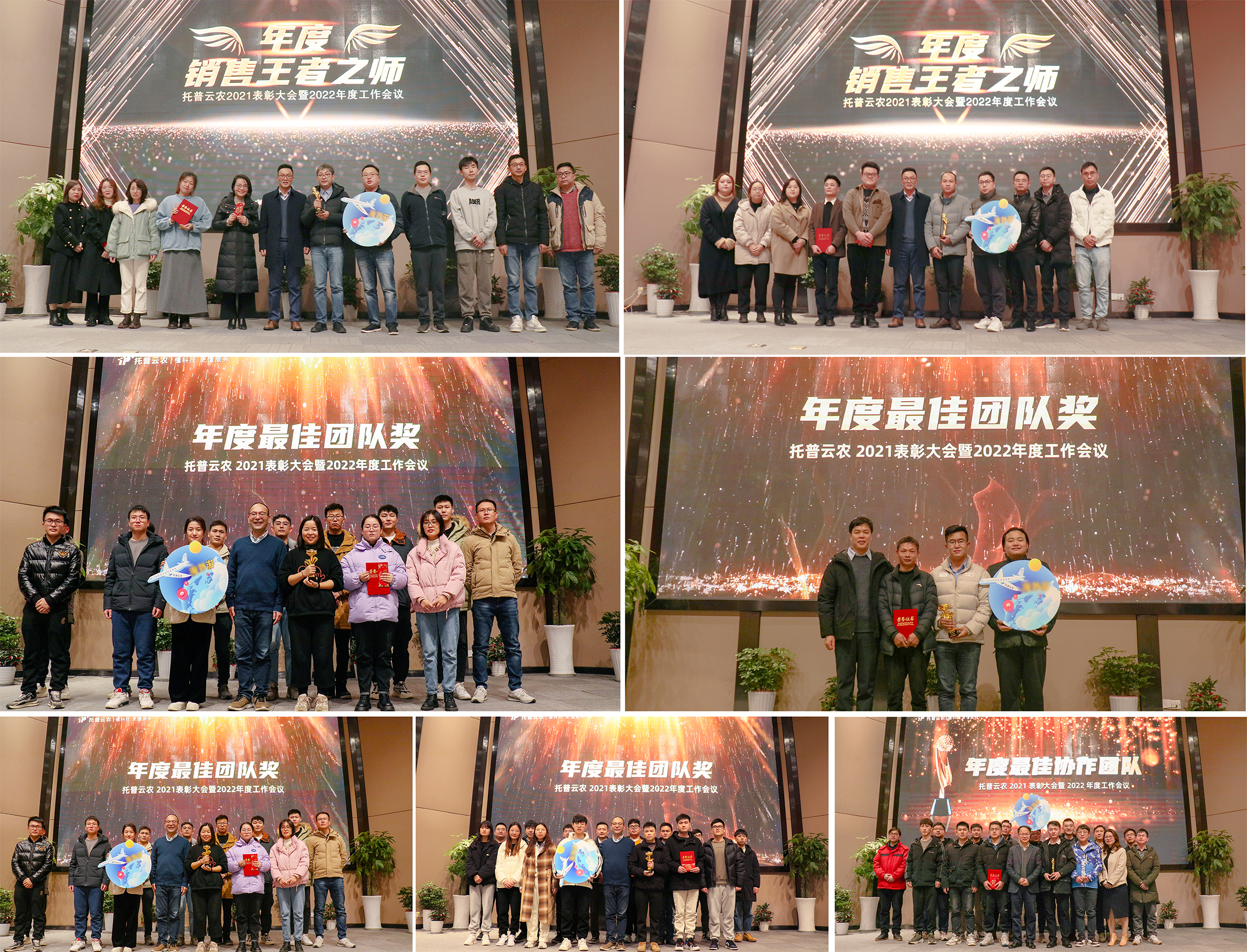 傲人成績的斬獲歸功于每一位托普人的拼搏奮斗。不平凡的一年里,越來越多優(yōu)秀人才加入托普云農(nóng),為夢想而來,為“三農(nóng)”而來。為增強企業(yè)向心力和凝聚力,營造“崇尚先進、學習先進、爭當先進”的濃厚氛圍,托普云農(nóng)舉行了2021年度表彰儀式,來自總部及子公司的47個團隊與個人摘得“最佳新人”“優(yōu)秀員工”“銷售精英”“最佳團隊”等多項榮譽。