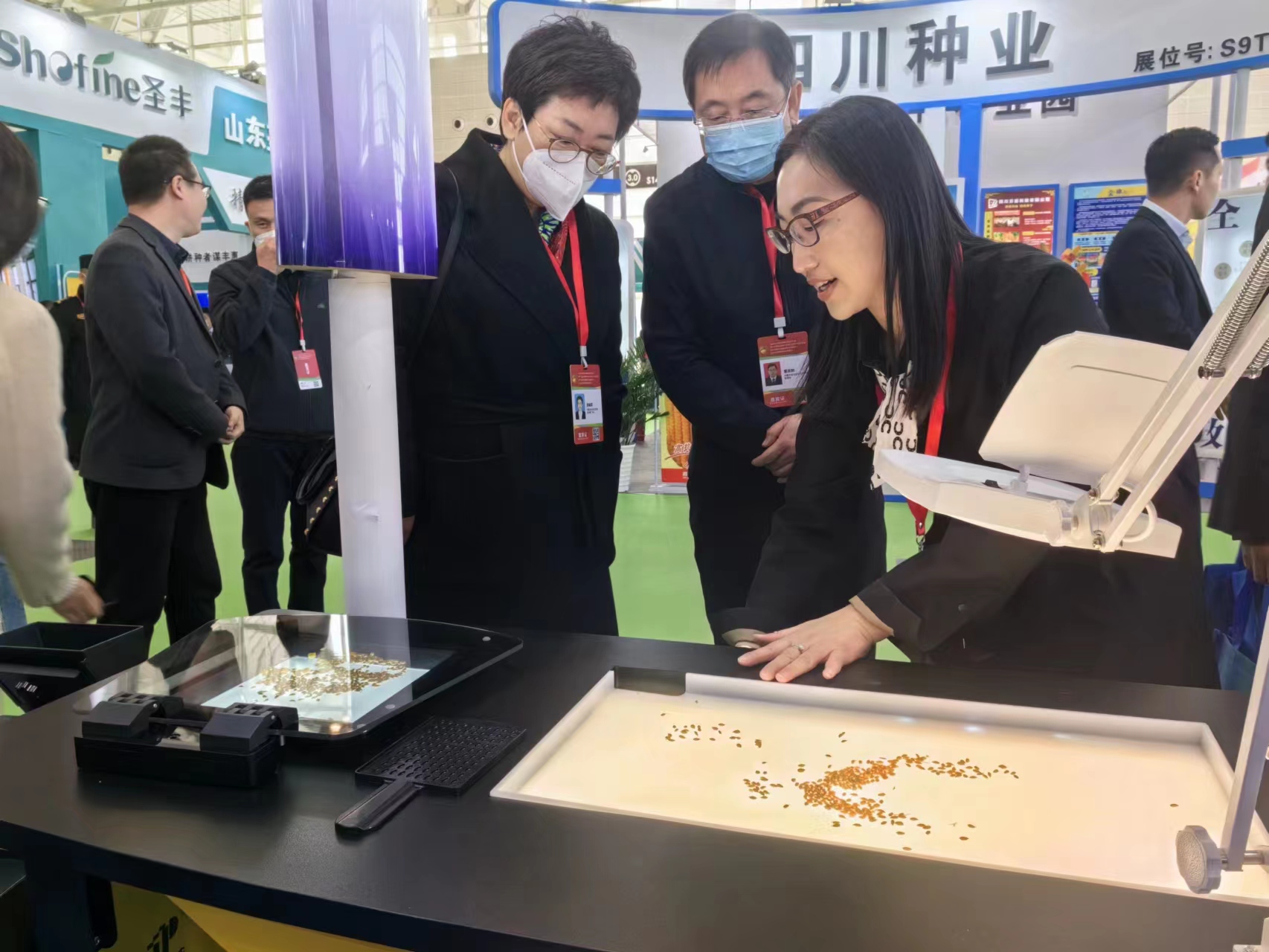 比如,此次展會(huì)上帶來(lái)的智能考種分析系統(tǒng)、水稻表型分析系統(tǒng)、智能人工氣候箱、自動(dòng)分樣型數(shù)粒儀、種子風(fēng)選儀、知種APP……性能更加穩(wěn)定、操作也更加便捷,所有數(shù)據(jù)都能鏈上云端,進(jìn)行可視化的展示,且與特定植物的已知遺傳數(shù)據(jù)對(duì)比,進(jìn)行關(guān)聯(lián)分析,從而實(shí)現(xiàn)良種選育的目的。