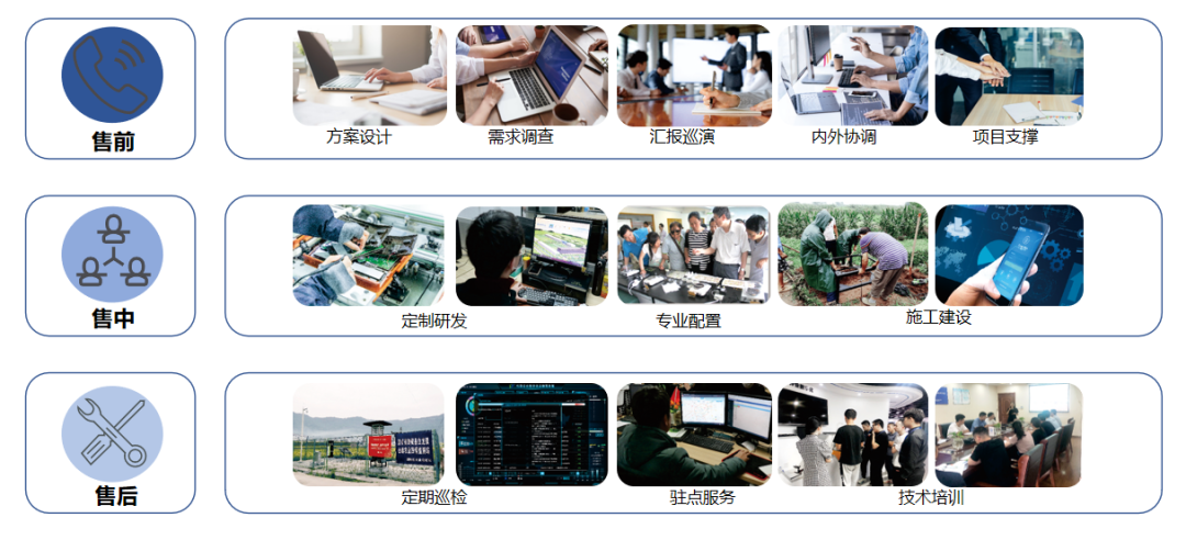 ,團隊成員均來自農業、計算機以及互聯網運營等專業領域,覆蓋售前、售中、售后全流程,提供需求調研、產品設計、培訓教學、功能優化、智能運維等全周期在內的一站式場景服務。另外,還與