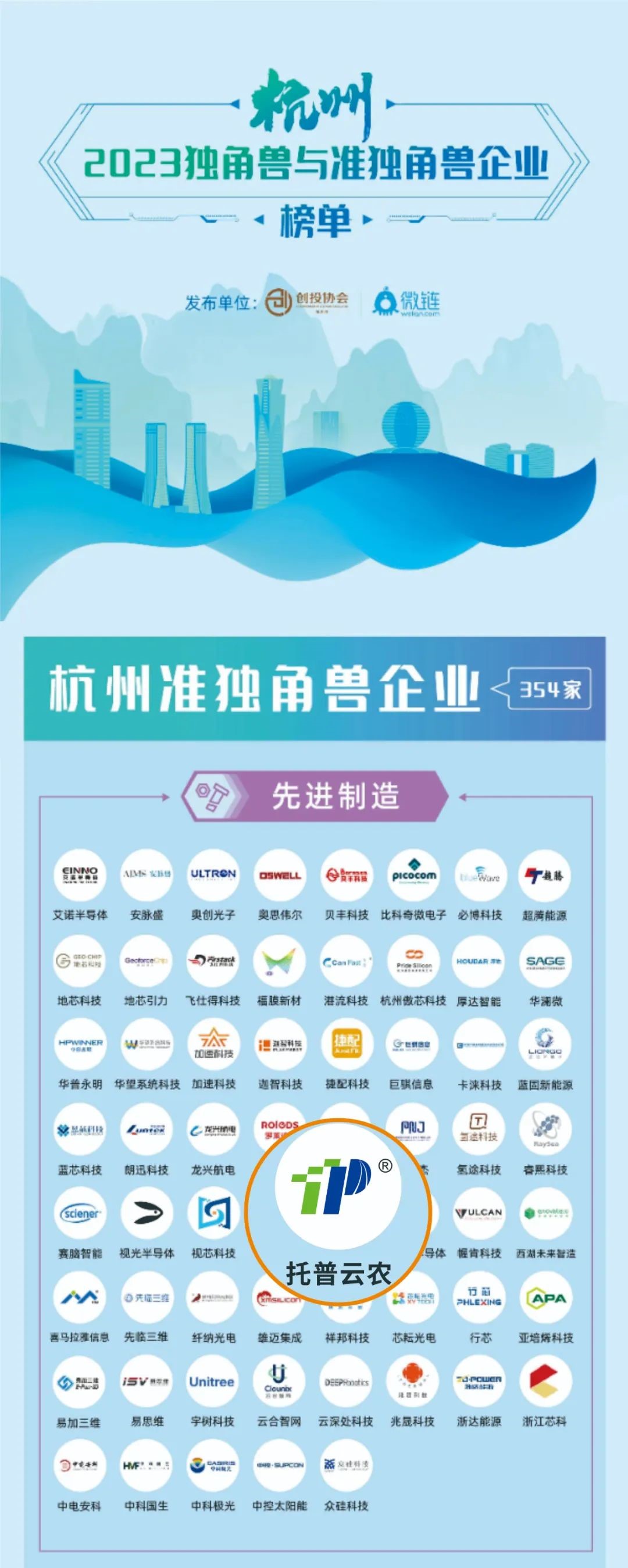 科技是第一生產力、人才是第一資源、創新是第一動力。4月10日,由中國科協指導,杭州市人民政府、民建浙江省委會、中國投資發展促進會聯合主辦的第七屆萬物生長大會在杭州舉辦。會上,《2023杭州獨角獸&準獨角獸企業榜單》正式發布,托普云農再次榮登杭州準獨角獸企業榜單!