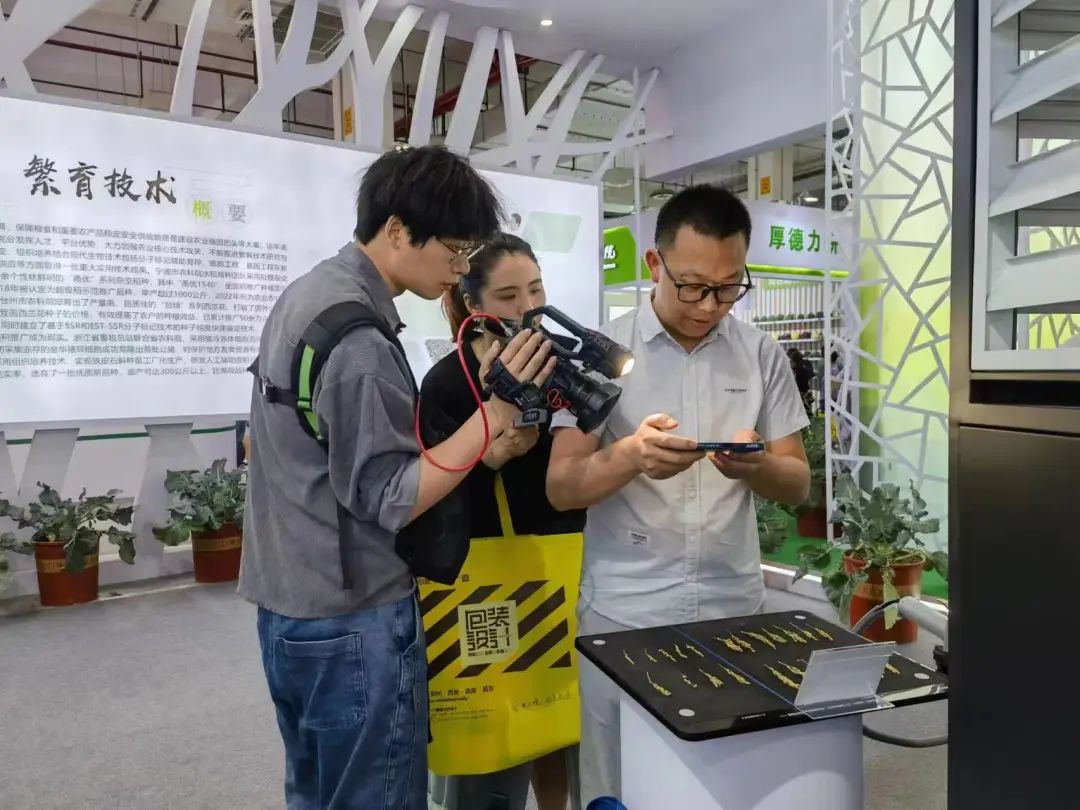 在種業博覽會現場,錢江視頻、潮新聞等媒體對托普云農展區做了采訪報道。托普云農展示的新產品、新技術和新應用吸引了現場參會人員的熱切關注。其中,光合作用測定儀、智能考種分析系統等育種智能裝備以及信息化平臺更是成為現場焦點,受到眾多參會嘉賓的好評。