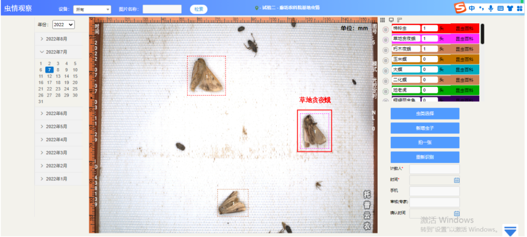 與之相應的,為進一步提升產(chǎn)品技術與性能穩(wěn)定性,2021年開始,托普云農(nóng)持續(xù)參與全國農(nóng)業(yè)技術推廣服務中心組織開展的智能蟲情測報燈誘集效果和識別準確率驗證工作,分別在廊坊基地、江西省九江市瑞昌市農(nóng)業(yè)農(nóng)村局植保植檢站開展了連續(xù)試驗,2021年6月(驗證初期),托普云農(nóng)智能蟲情測報燈在試驗點成功識別出白背飛虱,得到專家的驗證與確認。