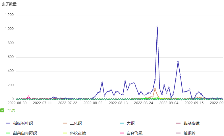 受臺風“軒嵐諾”影響,去年8月末,杭州市余杭區(qū)出現(xiàn)持續(xù)大風和高濕天氣,托普云農(nóng)智能蟲情測報燈有效監(jiān)測到稻縱卷葉螟及二化螟蛾峰,當?shù)剞r(nóng)業(yè)農(nóng)村局根據(jù)蟲害發(fā)生態(tài)勢,立即開展分品種、分區(qū)塊普查,結合系統(tǒng)調(diào)查結果,掌握防治適期,科學用藥,杜絕濫用藥。