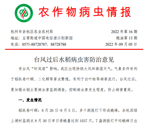 余杭區(qū)農(nóng)業(yè)農(nóng)村局發(fā)布防治意見