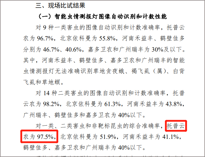 全國農(nóng)技中心發(fā)布比試結果,托普云農(nóng)測報產(chǎn)品識別準確率達97.5%