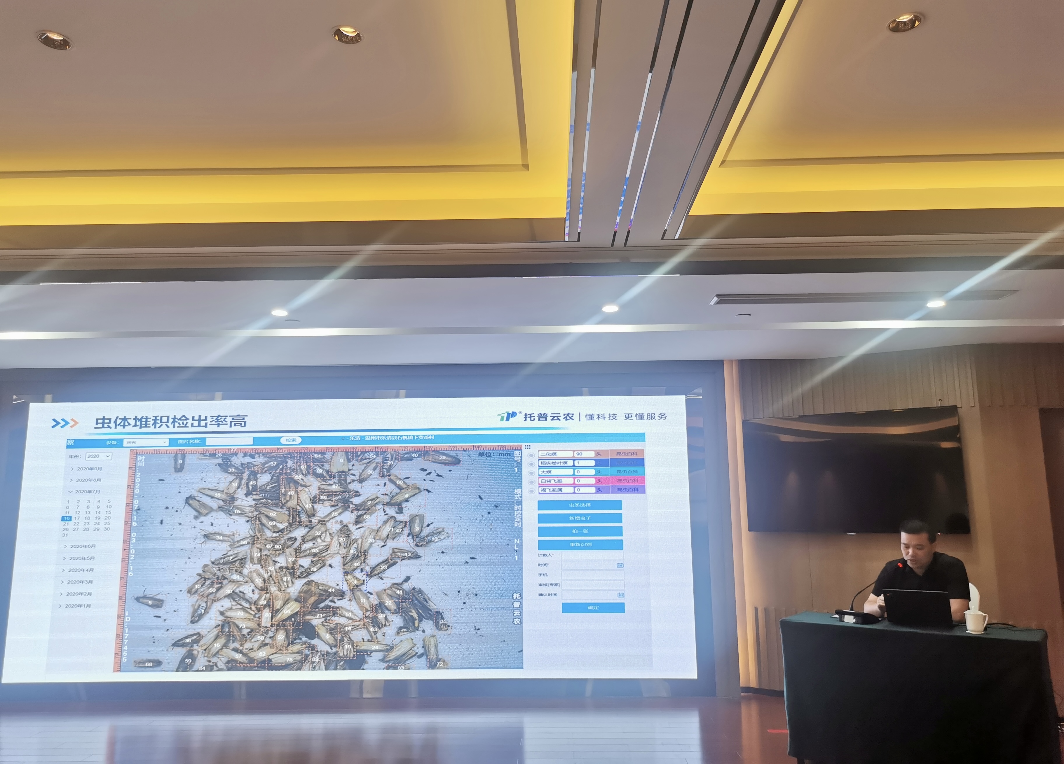 培訓(xùn)班上,全國農(nóng)業(yè)技術(shù)推廣服務(wù)中心首席專家王強、全國農(nóng)業(yè)技術(shù)推廣服務(wù)中心測報處副處長劉杰作了專題報告。培訓(xùn)班還就病蟲害測報產(chǎn)品應(yīng)用、綠色防控及物理防控產(chǎn)品應(yīng)用及前景、如何應(yīng)用科技論文為新產(chǎn)品新技術(shù)做好推廣等專題進行了研討。浙江托普云農(nóng)科技股份有限公司(以下簡稱“托普云農(nóng)”)作為企業(yè)代表應(yīng)邀參會并作專題匯報。