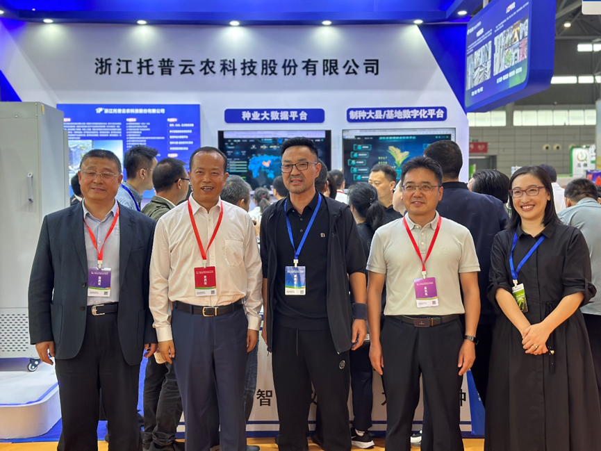 山東登海種業股份有限公司董事長唐世偉(右三)一行蒞臨托普云農展位