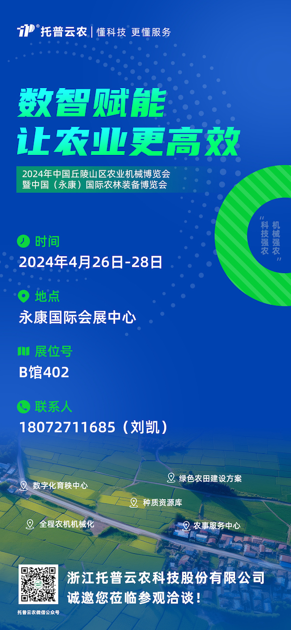 除了智能裝備展示,托普云農還將帶來綠色農田建設、農事服務中心等綜合解決方案,多維度、全方位地呈現在推動農業現代化進程中的多元創新成果與深厚實力。