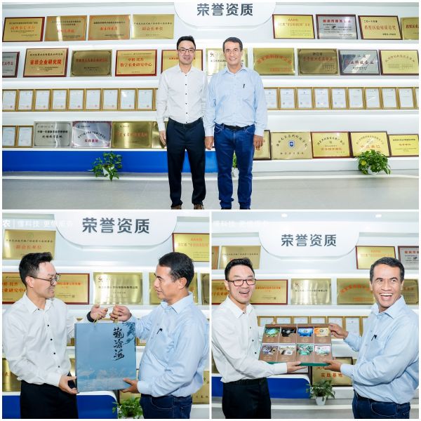 參觀過程中,代表團對托普云農在農業科研、生產等領域的科技創新應用實踐給予高度評價,在親切友好的氣氛中,本次交流活動圓滿結束,托普云農董事長陳渝陽與印尼農業部長阿姆蘭?蘇萊曼作為雙方代表合影留念并互贈禮物。