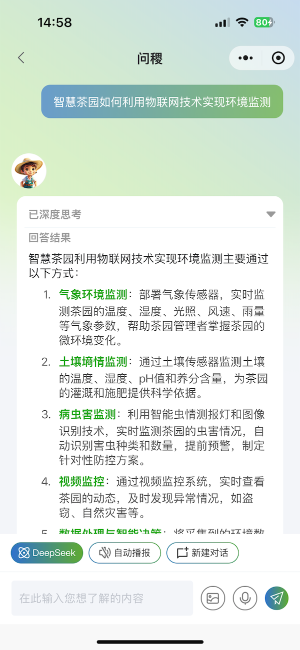 除了無人機外,托普云農自主研發的AR眼鏡、“問稷”智能體等熱門科技載體,也已經初步運用到西湖龍井的管理、開采環節,依托數字化的科技腳步,傳承千年的龍井茶種植正煥發出新的生機。