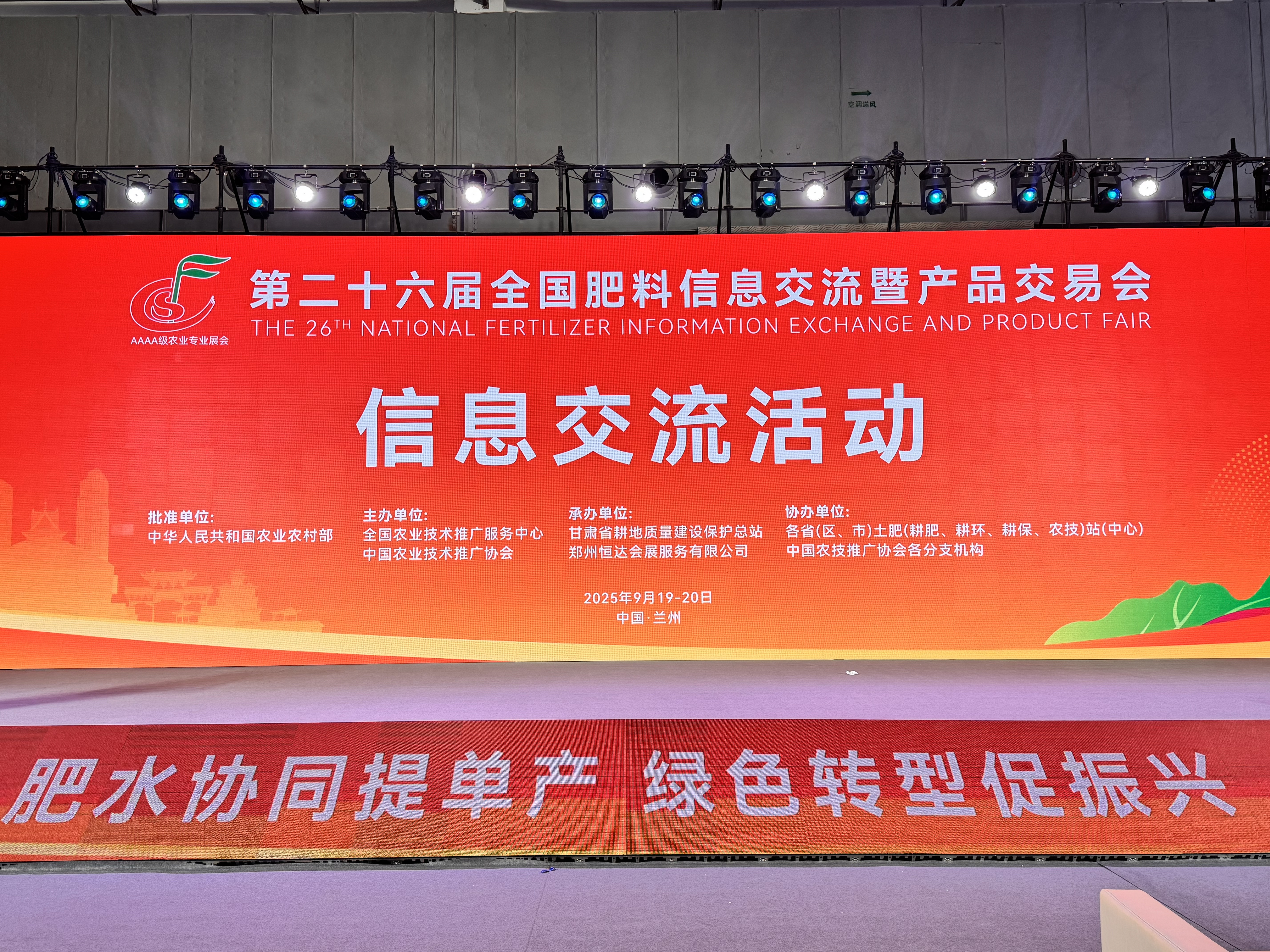9月19日,備受行業矚目的第二十六屆全國肥料信息交流暨產品交易會(以下簡稱全國肥料雙交會)在甘肅蘭州隆重開幕。農業農村部總農藝師、種植業管理司司長潘文博,甘肅省人民政府副省長、黨組成員王鈞出席了信息交流活動并講話。活動由全國農技中心主任謝焱主持。來自全國各地土肥水農技推廣單位、肥料企業、農資經銷商、經營主體等代表齊聚盛會,共同為實施“藏糧于技” 戰略、保障國家糧食安全注入產業動能。