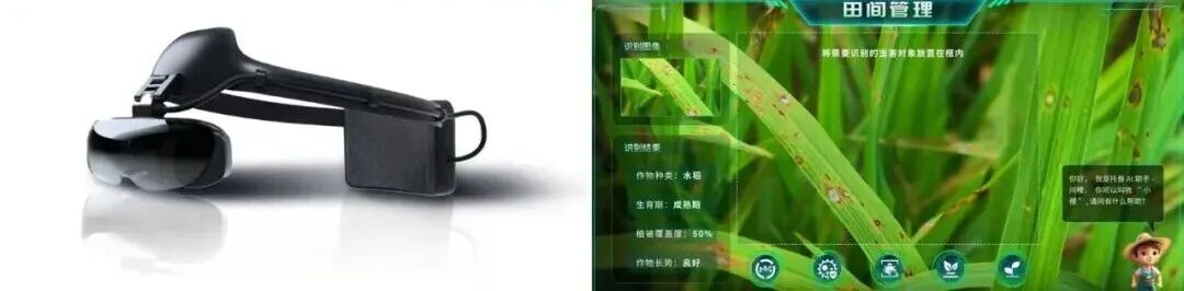 現場工作人員介紹,通過 AR 眼鏡,農技人員可實時獲取作物生長狀態、病蟲害情況等信息,無人機則能快速完成大面積農田的圖像采集與數據傳輸,再結合地面智能傳感器采集的土壤數據,多設備協同織就一張覆蓋 “天空地” 的農田監測密網。這些數據實時上傳至「問稷」AI 智能體后,可快速生成作物長勢分析、病蟲害預警等報告,為田間生產管理提供精準指導。