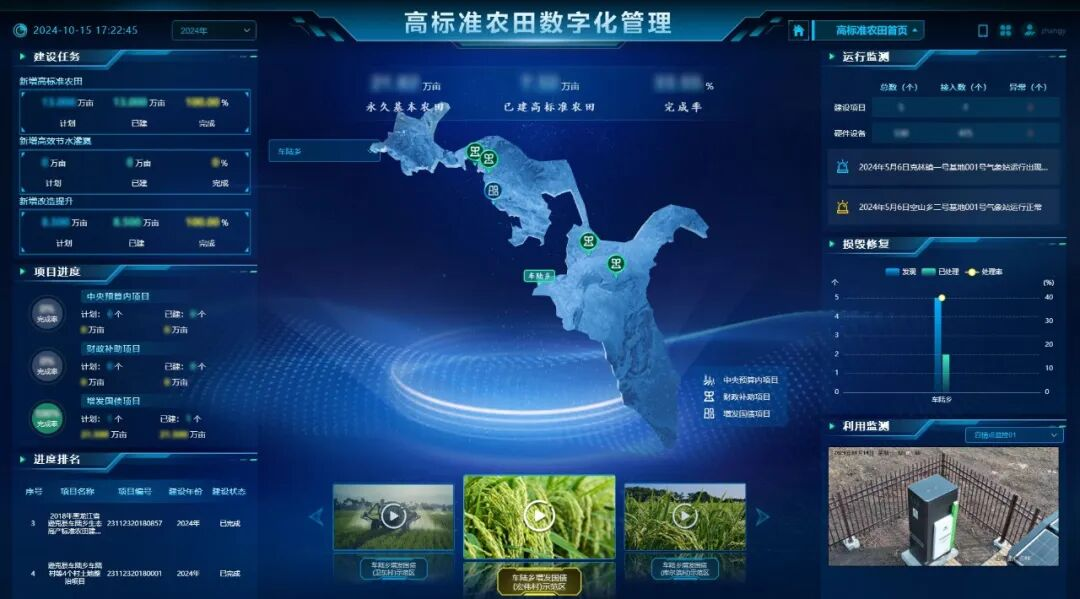良田有保障,糧食才滿倉。在高標準農田展示區,托普云農為黑龍江省遜克縣打造的高標準農田數字化管理平臺正實時更新著,各項建設任務、項目進度、農田設備運行狀態等數據一目了然。托普云農以國家規劃和要求為準繩,通過建立農田數字檔案、建立耕地質量管理數據系統、建設數智大田等舉措,助力政府部門統籌農田資源,助力種植主體提高種植生產效率,助力運維主體提升農田管護質量。三管齊下,“技”、“管”融合,為穩糧保供夯實基礎。