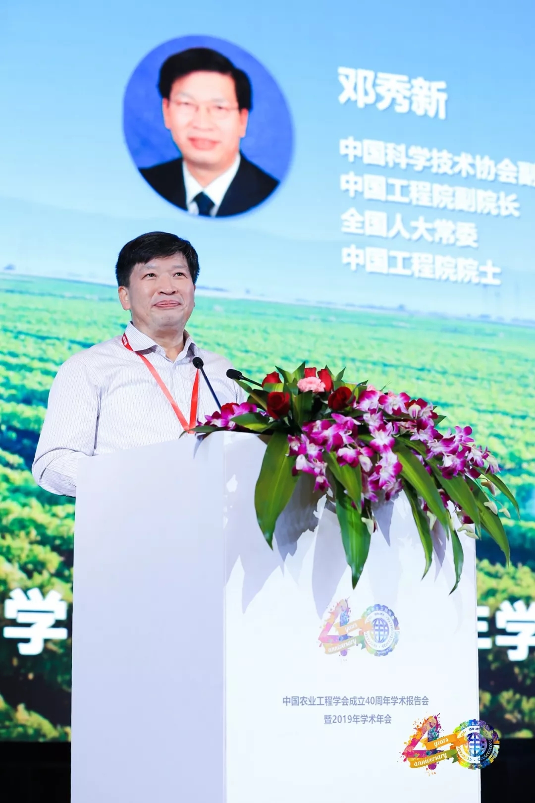 12月8日上午,中國農業工程學會成立40周年學術報告會暨2019年學術年會舉行開幕式,中國農業工程學會理事長隋斌、中國科學技術協會副主席、中國工程院副院長、全國人大常委、中國工程院院士鄧秀新、農業部原常務副部長、中國農業工程學會第五屆理事長劉成果、國務院參事、全國農業科技創業創新聯盟、全國鄉村文化產業創新聯盟主席、國務院扶貧辦原主任、農業部原副部長劉堅、農業農村部規劃設計研究院院長張輝等出席開幕式,開幕式由中國農業工程學會常務副理事長兼秘書長朱明主持。